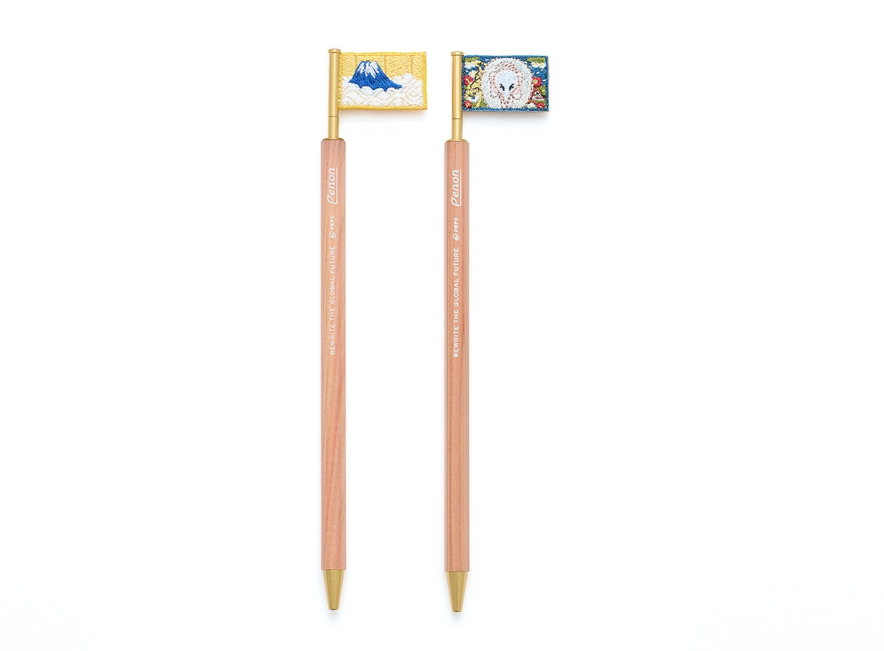 静岡県立美術館の限定PENONフラッグペンは、横山大観の「群青富士」と伊藤若冲の「樹花鳥獣図屏風」をモチーフにした商品です。