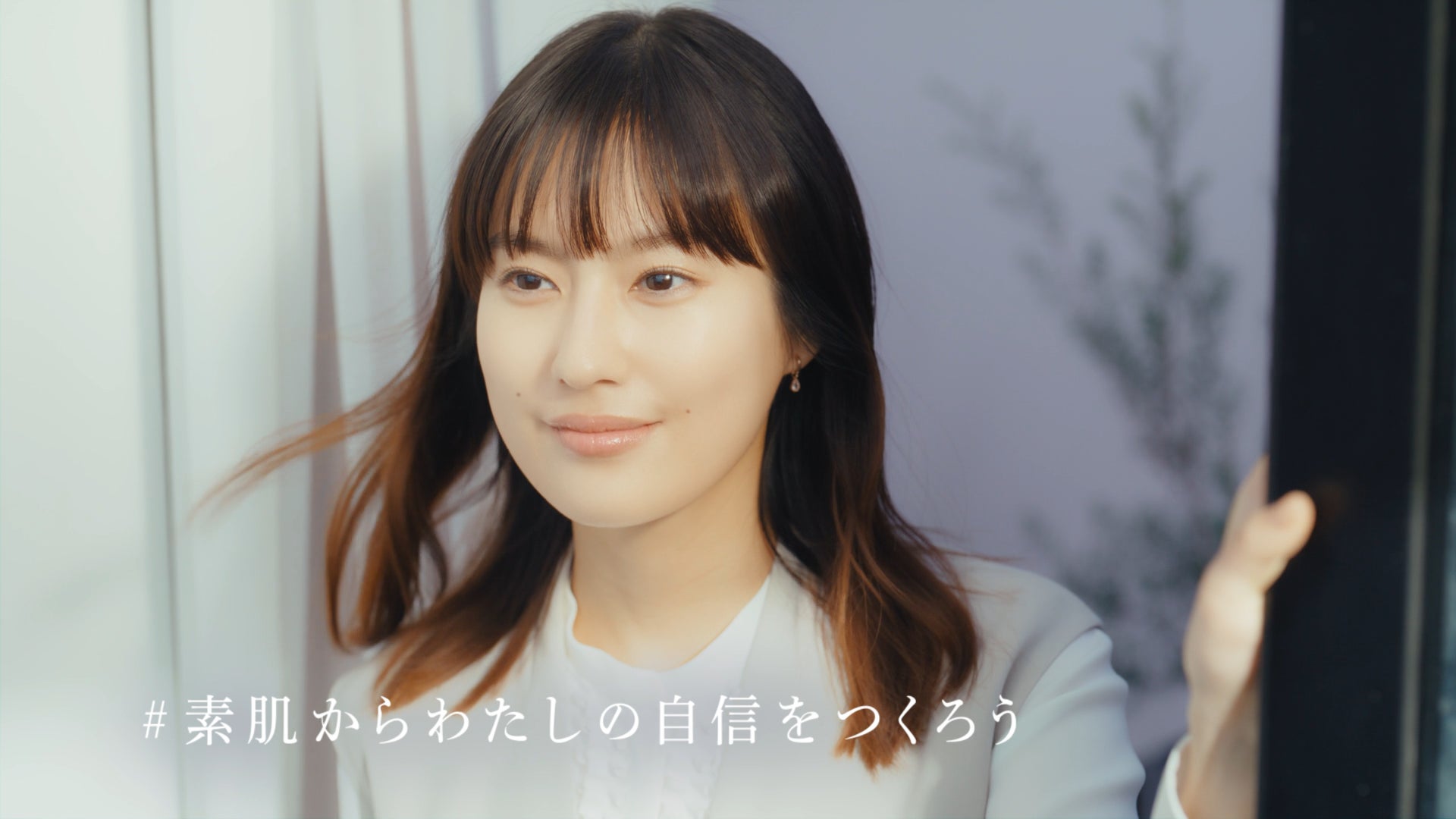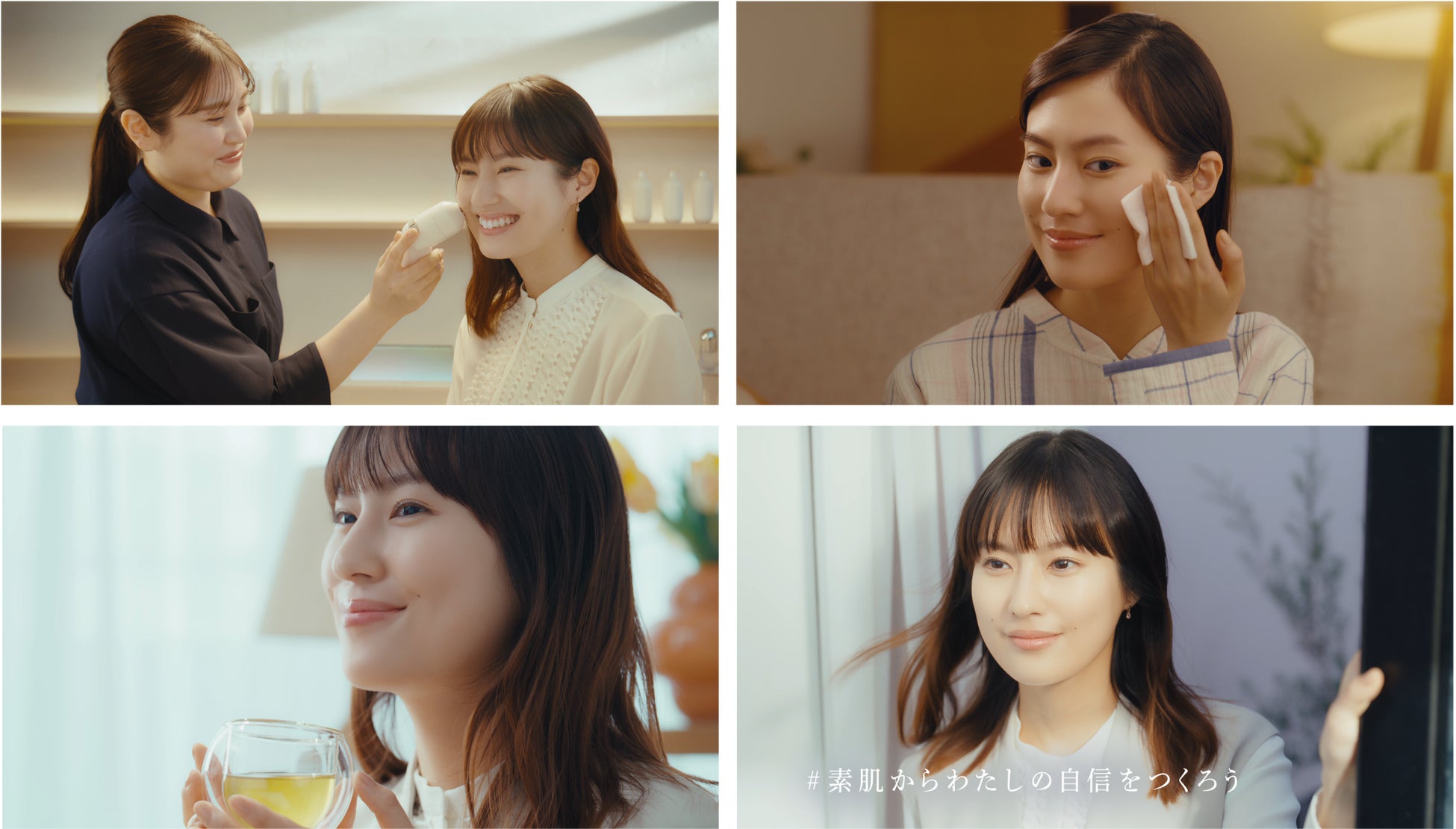 彼女はイプサの店頭で肌の悩みに向き合い、最適な化粧液「ME」を手にして素肌と向き合う姿を演じます。