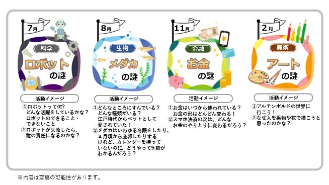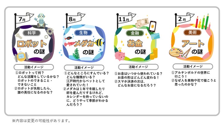- 2024年度は「ロボット」「メダカ」「お金」「アート」の4テーマ