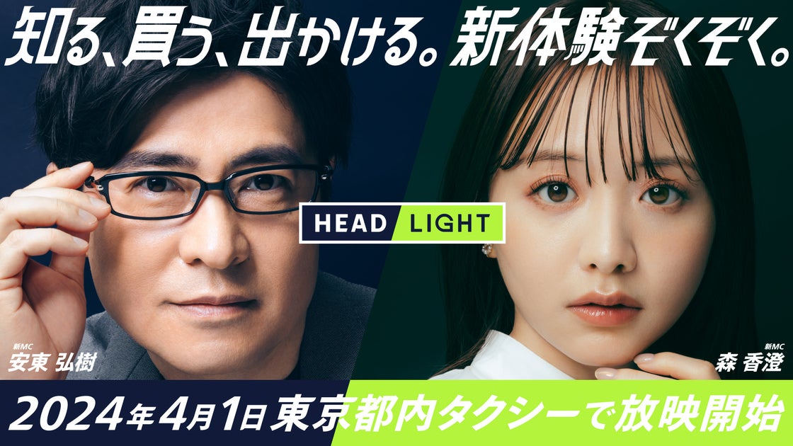 都内最大級のタクシーサイネージメディア「GROWTH」が、2024年4月1日から放送される新番組「HEADLIGHT」で、新MCに安東弘樹アナウンサーと森香澄さんを起用します。