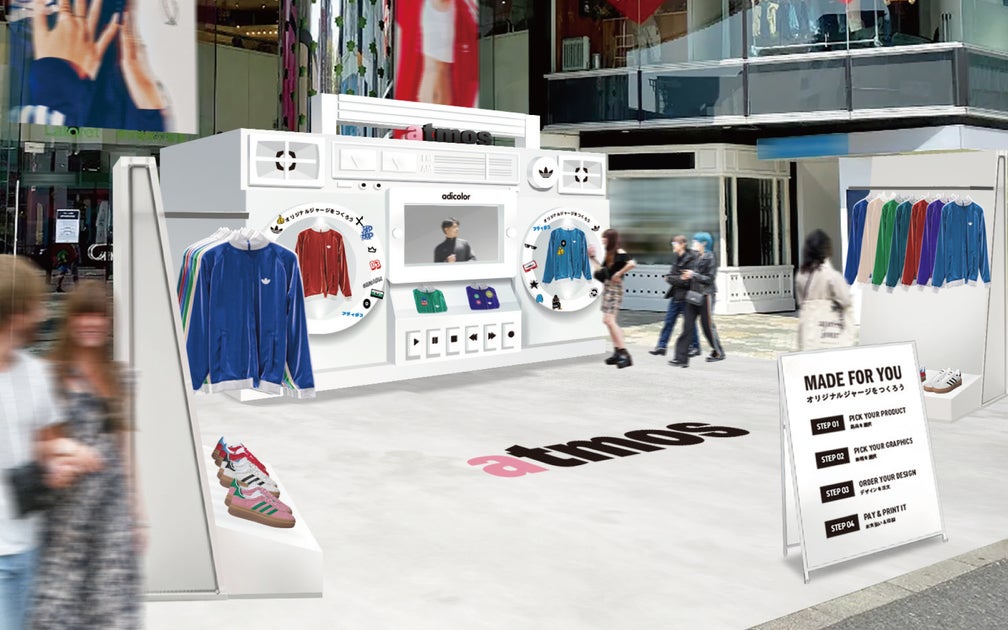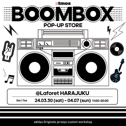 2024年3月30日からラフォーレ原宿で開催されるatmos pinkの期間限定ショップ「atmos pink BOOMBOX pop-up store」では、adicolorを含むadidas Originalsのトラックスーツやスニーカーが豊富に取り揃えられます。