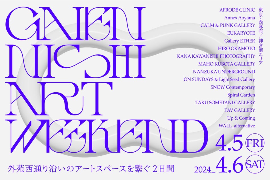 エイベックス・クリエイター・エージェンシー(ACA)は、2024年4月5日(金)から6日(土)に、西麻布・神宮前の外苑西通りで「GAIEN-NISHI ART WEEKEND」を開催します。