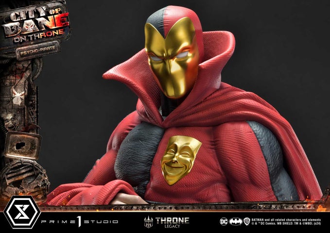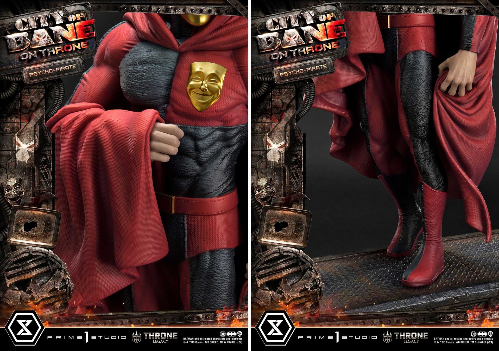 フラッシュポイントバットマンはゴッサム・シティでの復讐者姿を再現し、サイコ・パイレートは感情操作の力を表現しています。