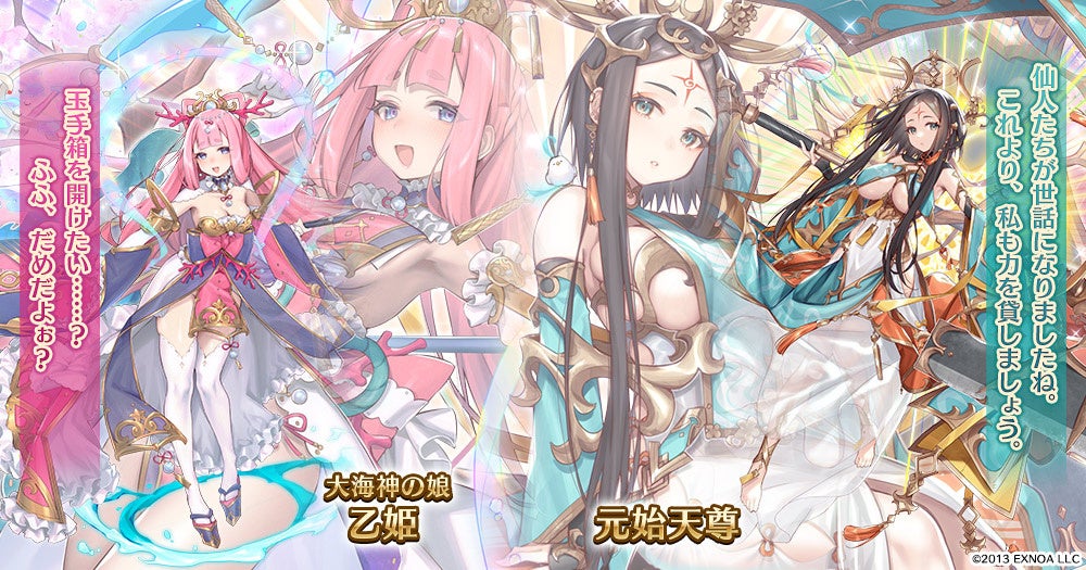 ※『大海神の娘 乙姫』『元始天尊』は確率アップ期間後も「プレミアム召喚」から出現します。(プレミアム召喚2などには順次追加を予定しております)また、今後の更新にて再度確率アップする場合があります。