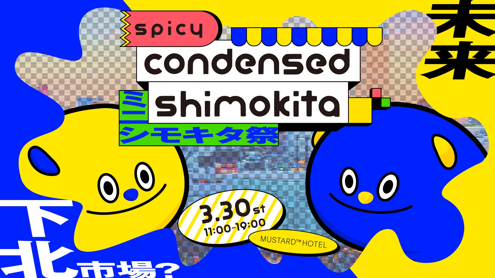 3月30日(土)に下北沢のマスタードホテル前デッキで開催される「SPICY CONDENSED SHIMOKITA ミニシモキタ祭」は、青と黄色のアイテムをテーマにしたイベントです。