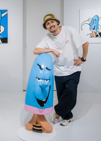 一方、ホシ エイスケさんはストリートで印象的なデザインを展開し、音楽やアパレルのグラフィックデザインも手掛けています。