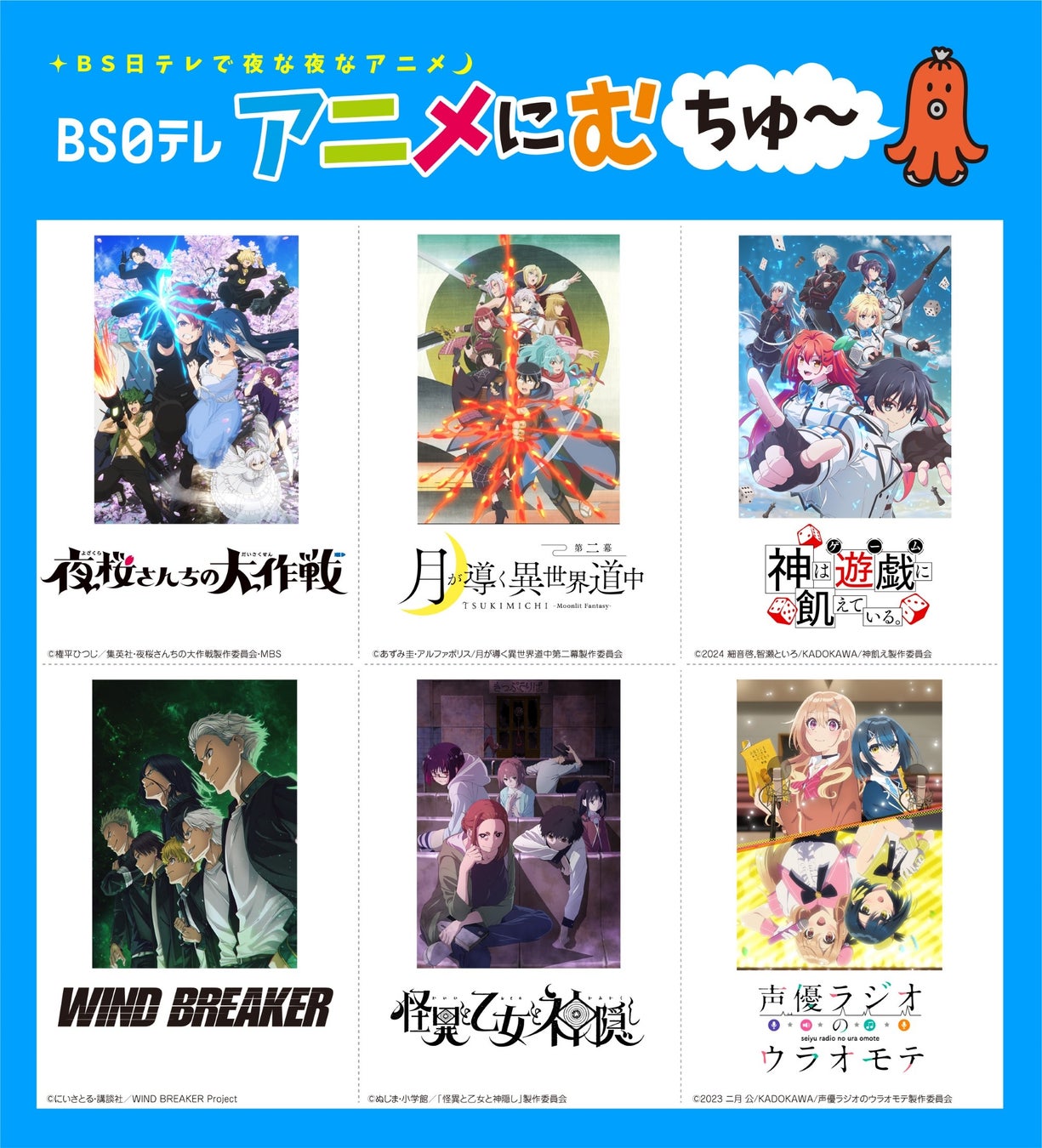 BS日テレの深夜アニメゾーン『アニメにむちゅ~』は、2024年4月期に14タイトルの新作アニメを放送予定です。