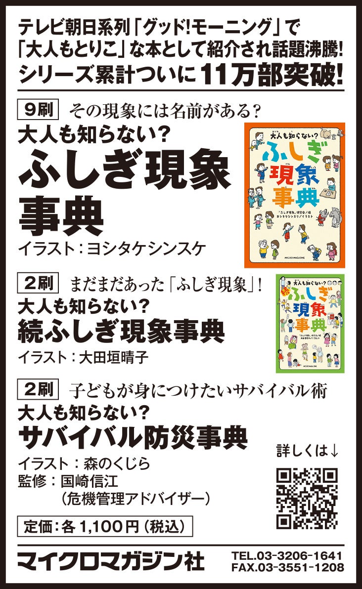 マイクロマガジン社が3月27日の朝日新聞に掲載した『大人も知らない? ふしぎ現象事典』シリーズが各メディアで話題となり、累計11万部を販売する大ヒットとなりました。