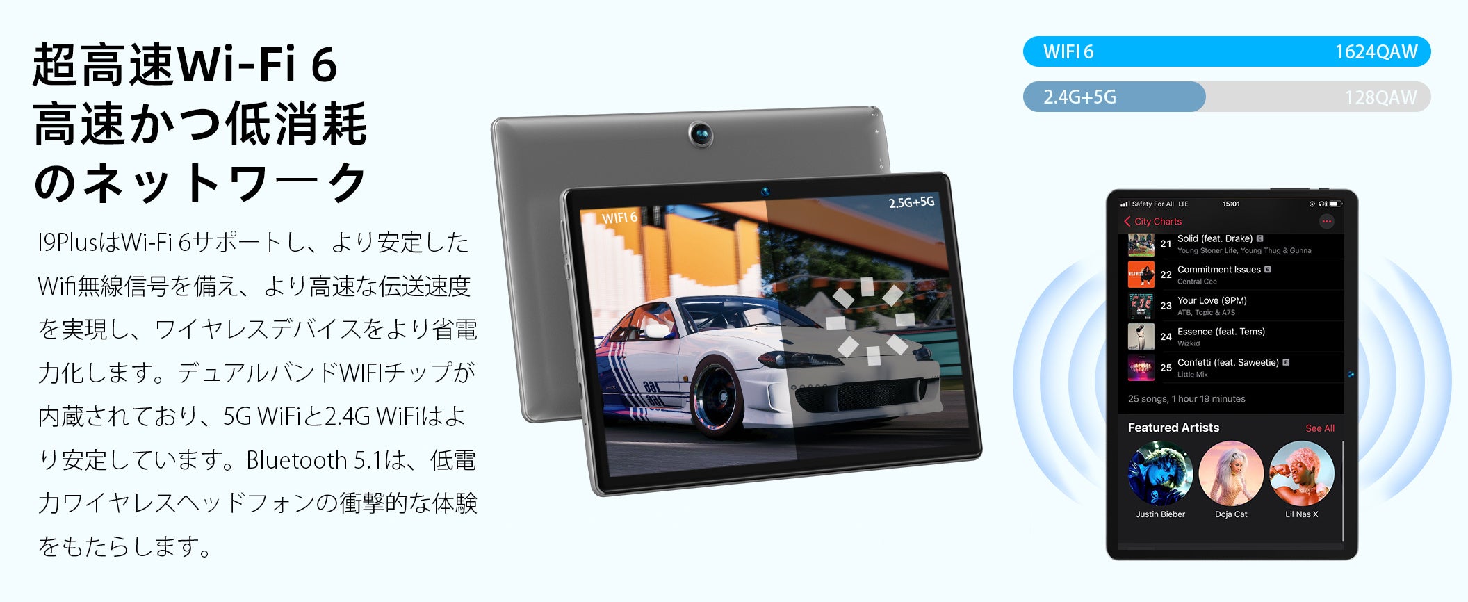 BMAX I9Plus タブレットは WiFi6 モードをサポートしています。 2.4G / 5GデュアルバンドWiFi接続、タブレットのプロフェッショナルWiFiバージョンをサポートし、さまざまな接続方法に適応します。 WiFiへのより便利で高速な接続を提供できます。 使いやすく、タブレットがもたらす無限の楽しみをお楽しみください。