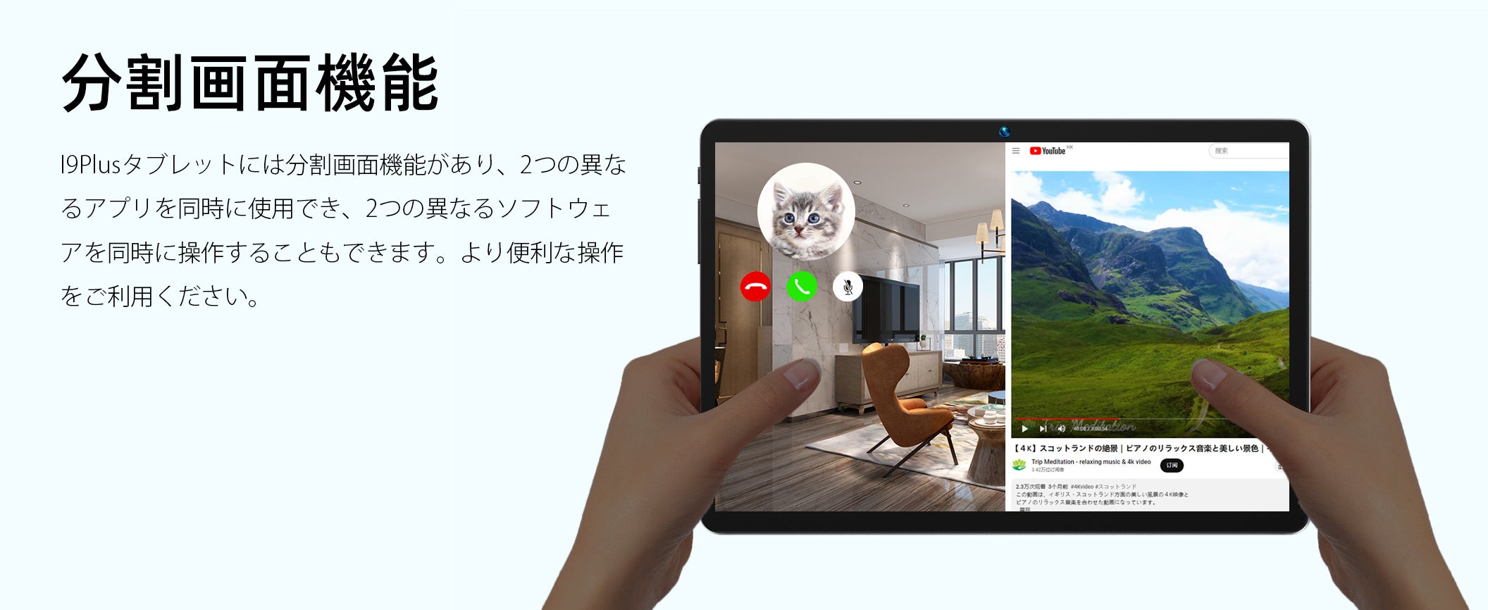 - Android 12システム搭載、4GB+64GBメモリ、画面分割表示機能、WiFi6モード、デュアルカメラ搭載