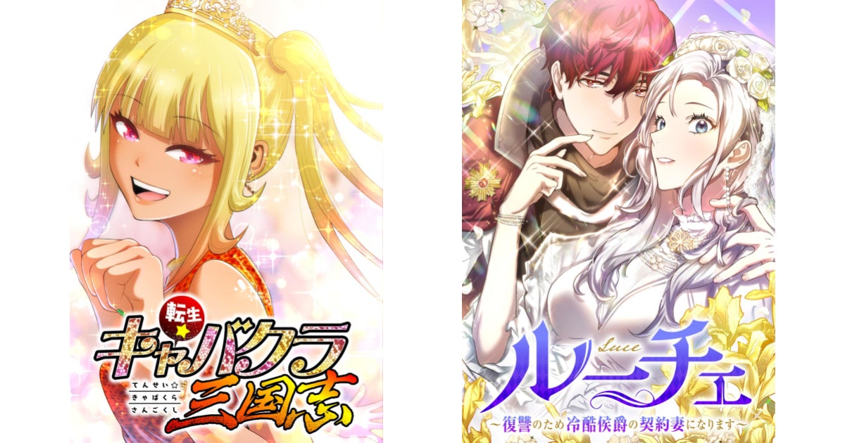 1つは曹操がキャバクラ嬢に転生する『転生★キャバクラ三国志』、もう1つは復讐のロマンスファンタジー『ルーチェ~復讐のため冷酷侯爵の契約妻になります~』。