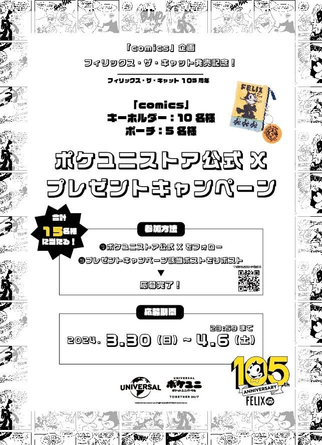 ウッディー・ウッドペッカー、キャスパー、フィリックス・ザ・キャットのキャラクターを展開し、フィリックス・ザ・キャット生誕105周年を記念したプレゼントキャンペーンも実施されます。