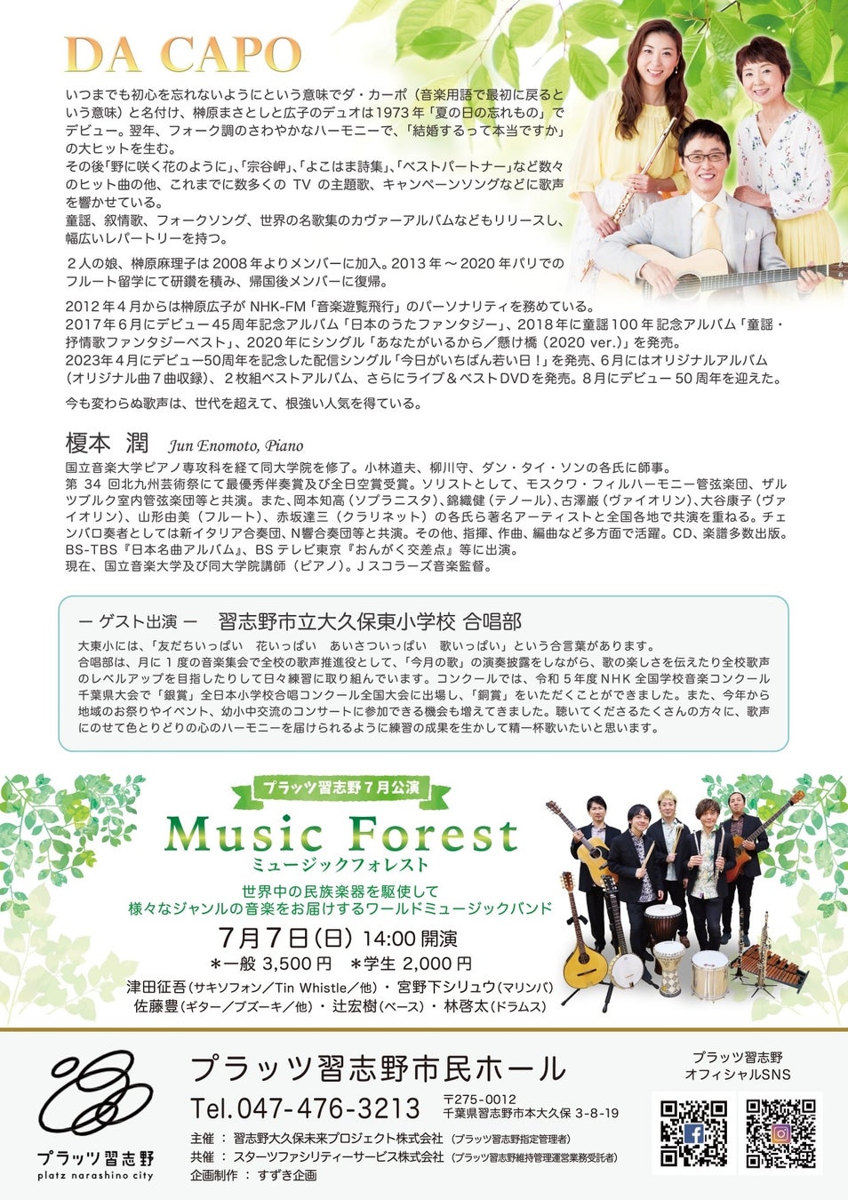 - 習志野市民ホールで「ダカーポ」50周年記念コンサート開催