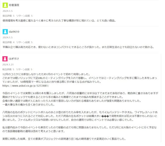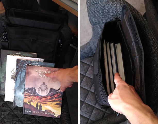 その後、ボードゲーム愛好家の翻訳家からボードゲーム用バッグとしての提案を受け、実際に大型のボードゲームが収納可能であることが確認されました。