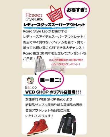 - レディースバイクウェアのアウトレット販売や新ブランドの展示、イベント盛りだくさん