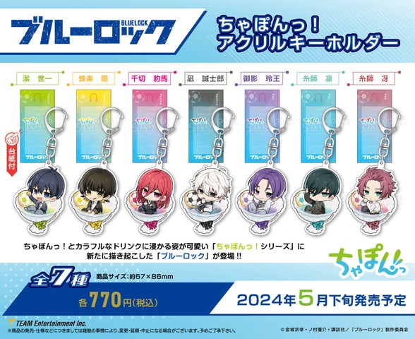 - TVアニメ『ブルーロック』の「ちゃぽんっ!シリーズ」は、可愛いキャラクターたちがカラフルなドリンクに浸かったイラストが特徴