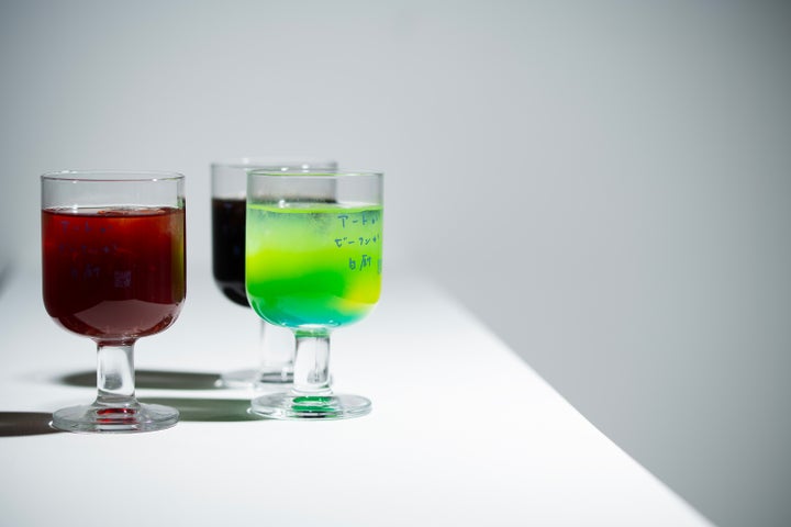 展覧会のテーマである「色彩」を軸に、赤、黒、緑の3種類のカクテルが用意されます。