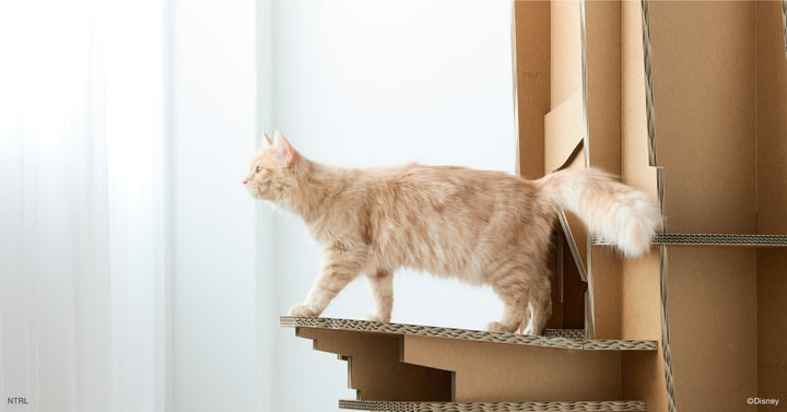 猫が楽しめる要素を取り入れ、組み立て式で、猫のしぐさやディズニー作品の要素を取り入れています。