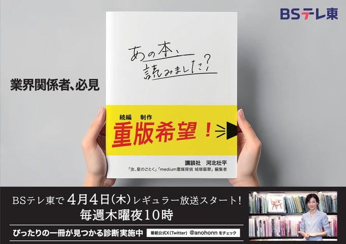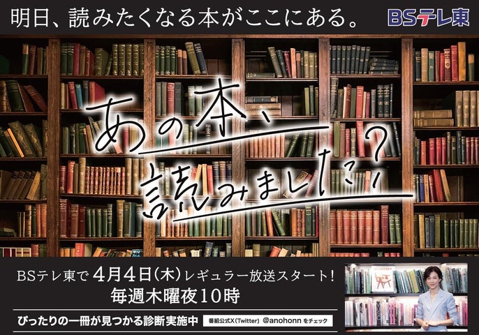 2024年4月4日(木)夜10時からBSテレ東で放送される「あの本、読みました?」は、俳優の鈴木保奈美がMCを務める読書エンターテインメント番組です。