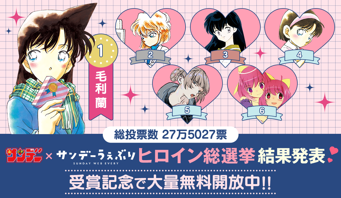 - 「週刊少年サンデー&サンデーうぇぶりヒロイン総選挙」の結果発表、1位は毛利蘭