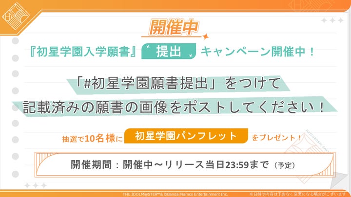 さらに、「初星学園入学願書」配布キャンペーンや提出キャンペーンも開催されています。
