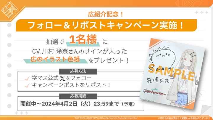 篠澤 広の紹介を記念して、フォロー&リポストキャンペーンも実施中です。