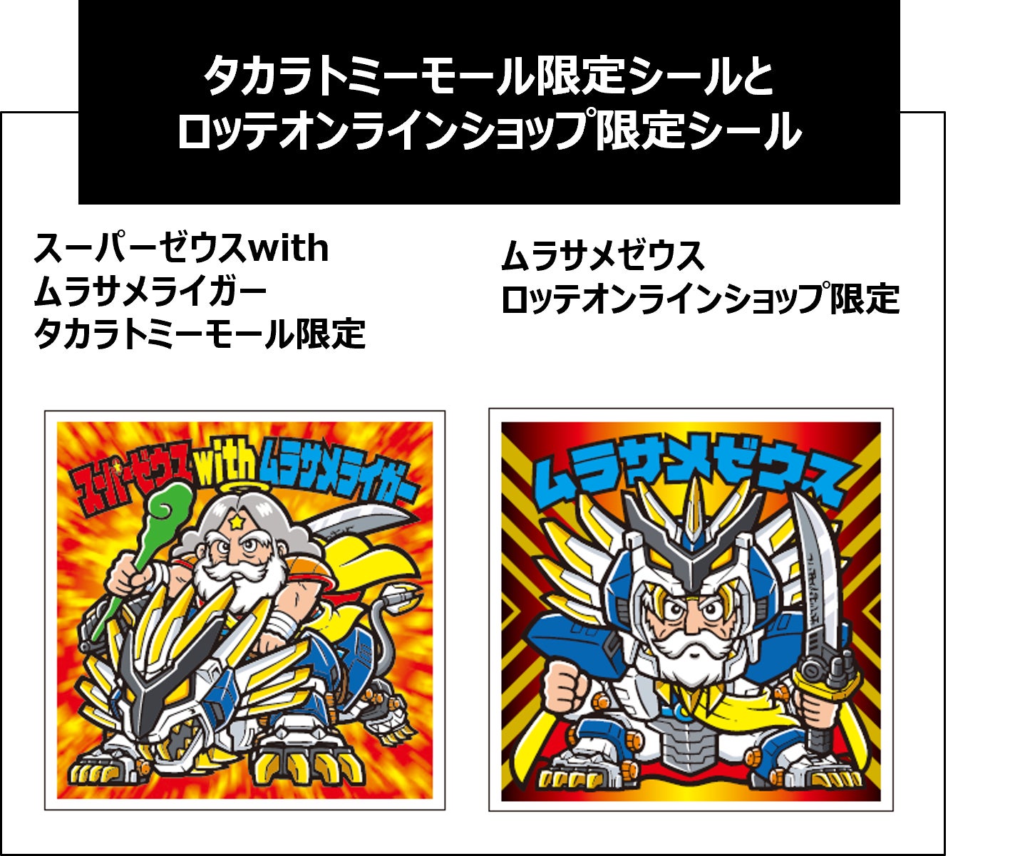 また、タカラトミーモールで予約した方には、台紙付き特別シール「スーパーゼウスwithムラサメライガー」がプレゼントされる。