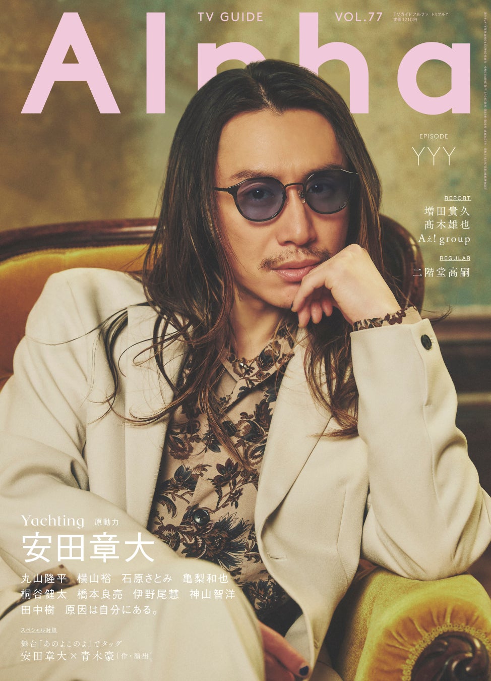 TVガイドAlphaの最新号は、写真集のようなビッグサイズの判型が特徴で、今回は「YYY(トリプルY)」をテーマに安田章大が登場します。