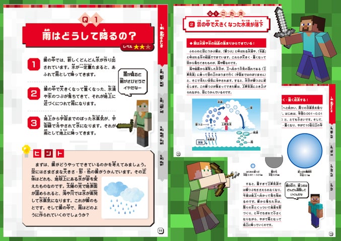 - 子ども向けの科学読本で、マインクラフトキャラとクイズで学習