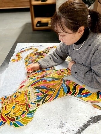 ディンプルアートは自動車フロントガラスのリサイクルから生まれた絵の具で、ステンドグラスのような作品が楽しめます。