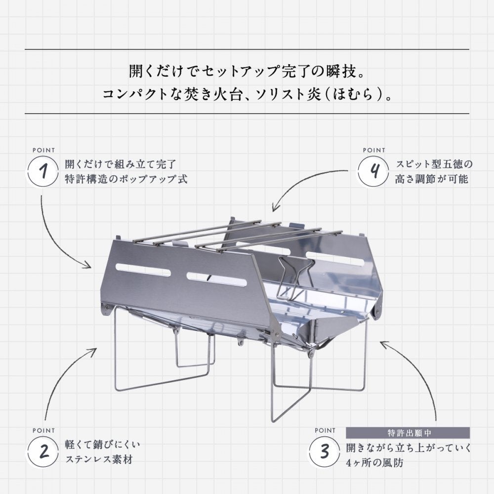 鎌倉天幕は環境保全や防災にも取り組むアウトドアブランドで、HIDEOUT-02DXやSOLOIST HOMURAが展示されます。