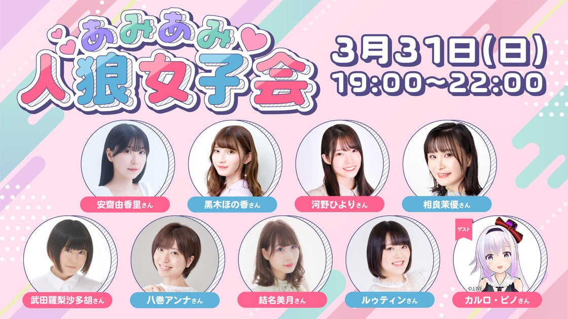 ニコニコ動画の「あみあみチャンネル」では、2024年3月31日に19時から『人狼女子会』が放送される予定です。