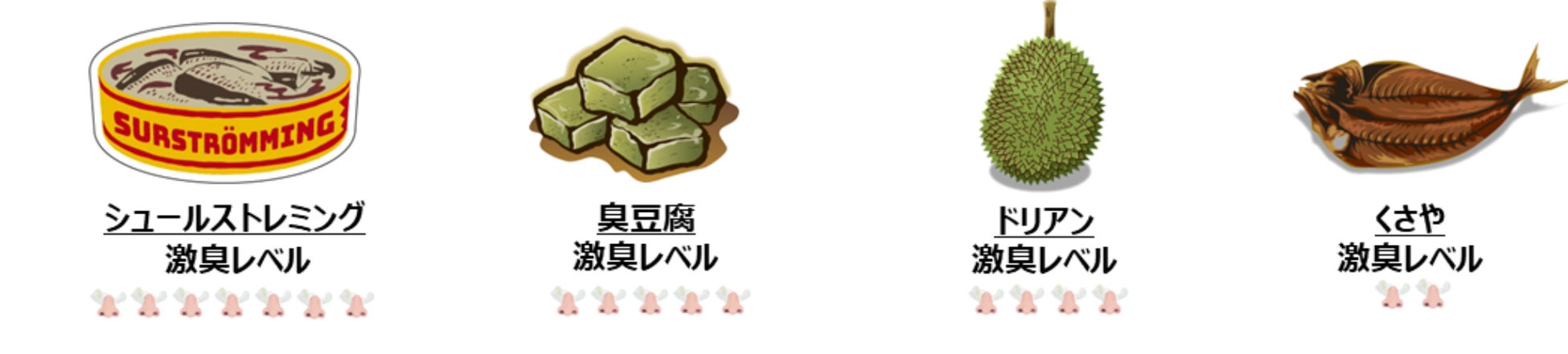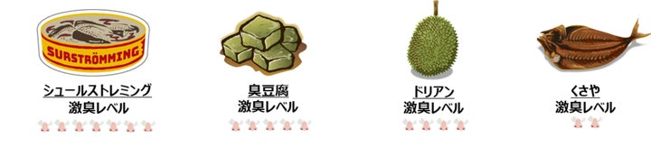 - 激臭、UMS、シュールストレミング、臭豆腐、ドリアン