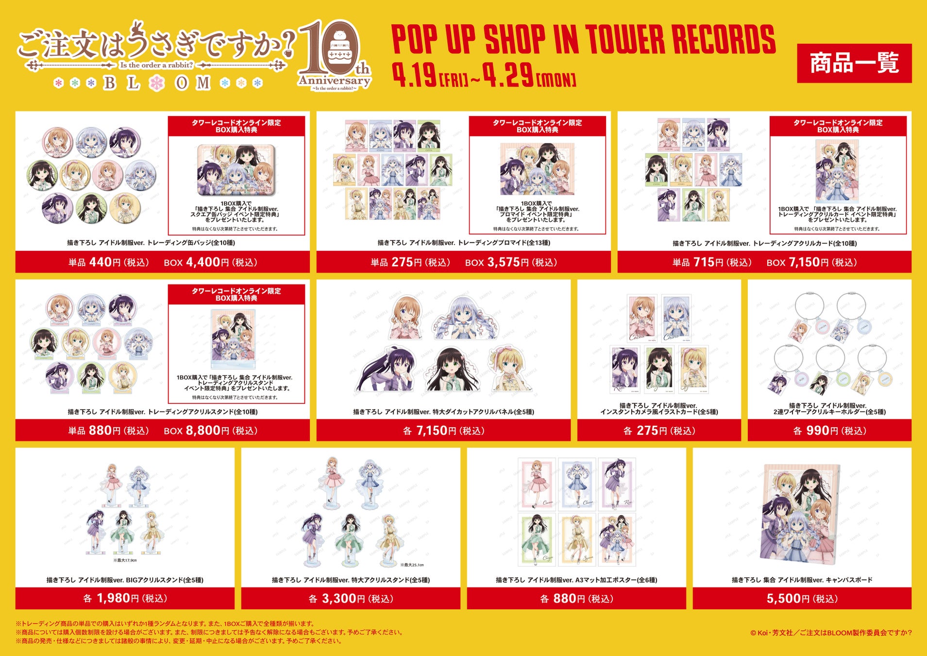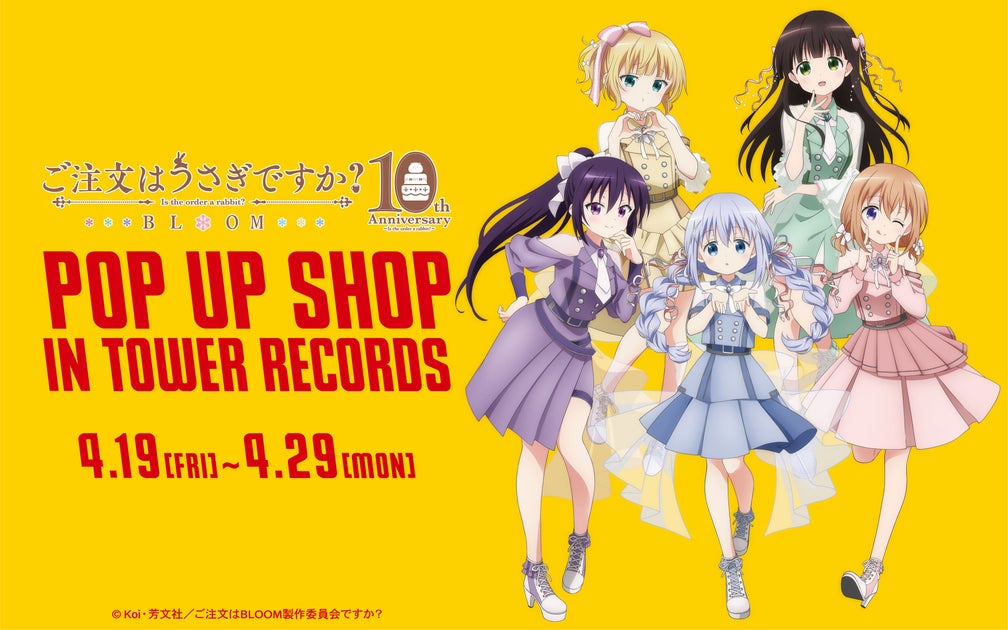 株式会社アルマビアンカは、『ご注文はうさぎですか? BLOOM』のアニメ10周年を記念したイベントを、2024年4月19日から4月29日まで、新宿店、名古屋近鉄パッセ店、梅田NU茶屋町店、およびタワーレコードオンラインで開催します。
