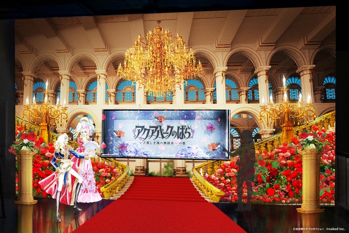 - エスコート大階段や水槽エリアで世界観再現、薔薇の花やキャラクター描かれる
