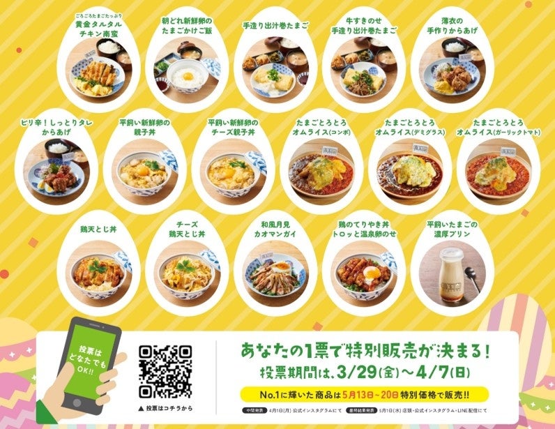 投票では人気No.1の卵料理を決定し、特別価格で販売されます。