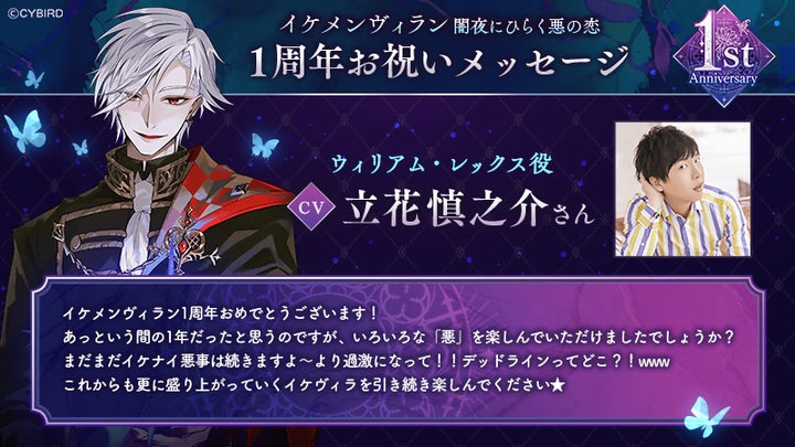 さらに、ウィリアム・レックス役の立花慎之介さんからのお祝いメッセージや、初の公開生放送やLINE着せかえ配信など、様々なイベントが開催されます。