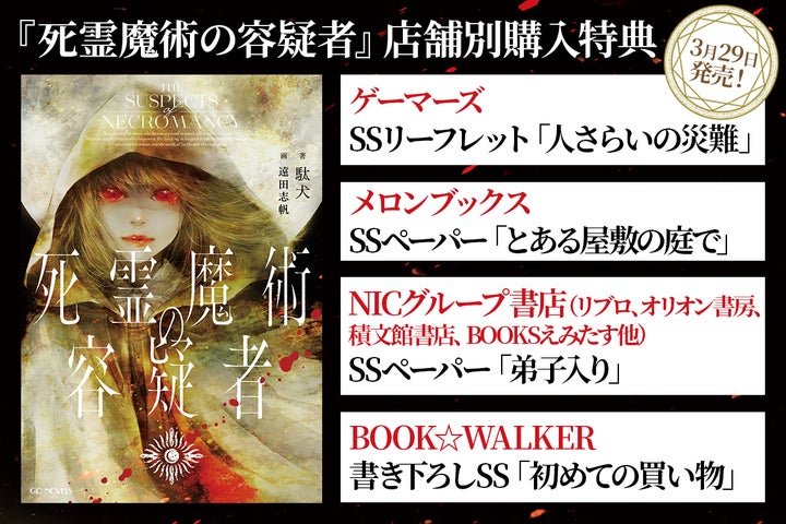 マイクロマガジン社は3月29日にGCノベルズ『死霊魔術の容疑者』をリリースします。