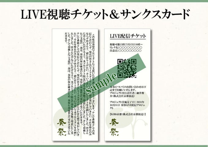 プロジェクトでは、2024年5月15日に葵祭の行列を中心にVTRや解説を交えてインターネットでLIVE配信する予定です。