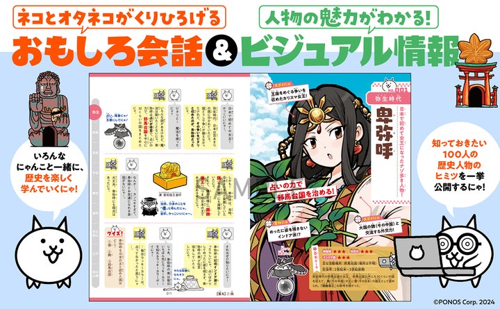 新刊『にゃんこ大戦争でまなぶ!』は、東大教授監修の学習書で、子ども向けに日本の歴史人物100人を楽しく学べる内容となっています。