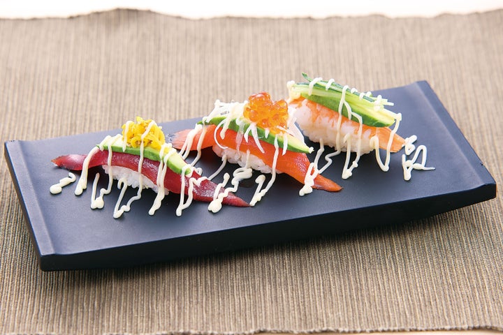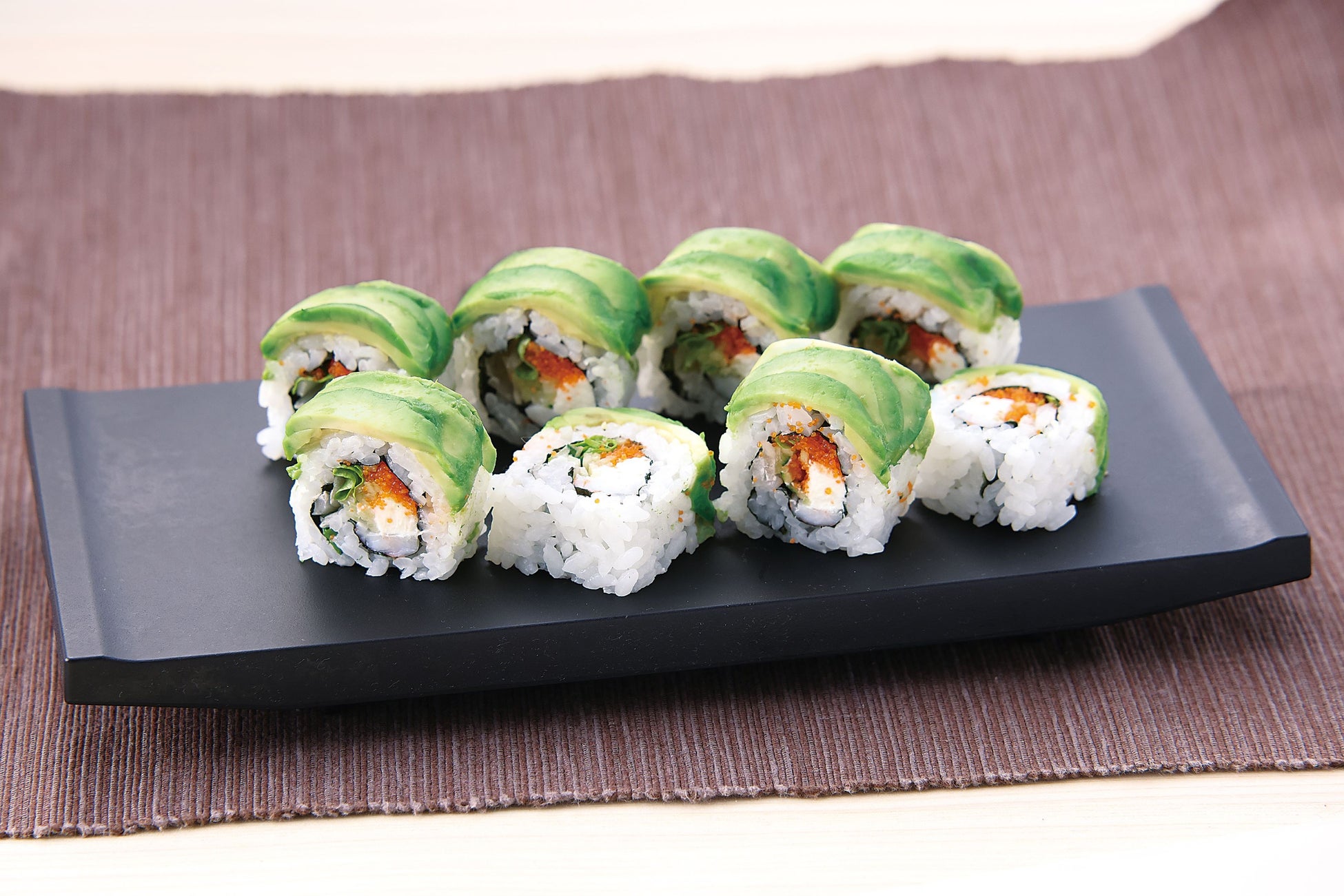 海鮮アボカド三貫にぎりやアボカドメキシカンロールなど6種類が登場します。