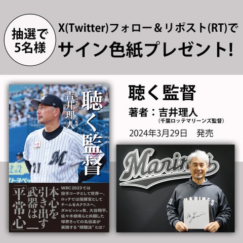 「聴く監督」著者の吉井理人氏サイン色紙プレゼントキャンペーンが実施中です。