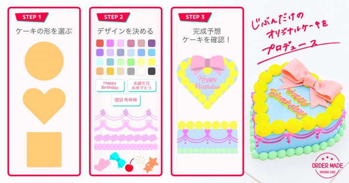 Cake withは自分だけのケーキをプロデュースできるサービスで、7万×24色のデザインパターンがあります。