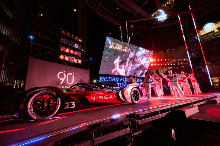3月21日、六本木ヒルズアリーナで開催されたスペシャルイベントでは、日産のフォーミュラEマシンが特設サーキットを駆け抜け、MOSとGANMIのパフォーマンスと共に観客を魅了しました。