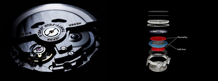 SEIKO NE88機械式クロノグラフムーブメントを使用し、耐磁性にも優れています。
