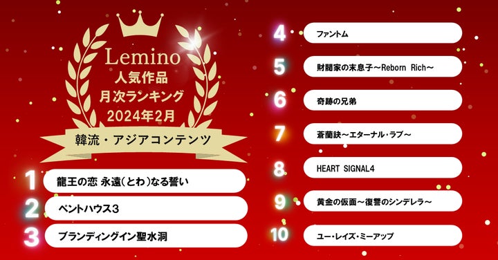 NTTドコモの映像配信サービス「Lemino」が2024年2月の月次視聴数ランキングを発表しました。