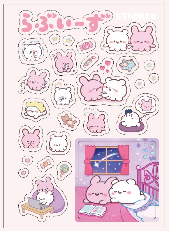 人気キャラクター「らぶいーず」の初の書籍が発売されました!ぴょんちーとすもっぴの日常やらぶらぶな姿が楽しめる一冊で、書籍限定の特典としてスペシャルシールも付いています。