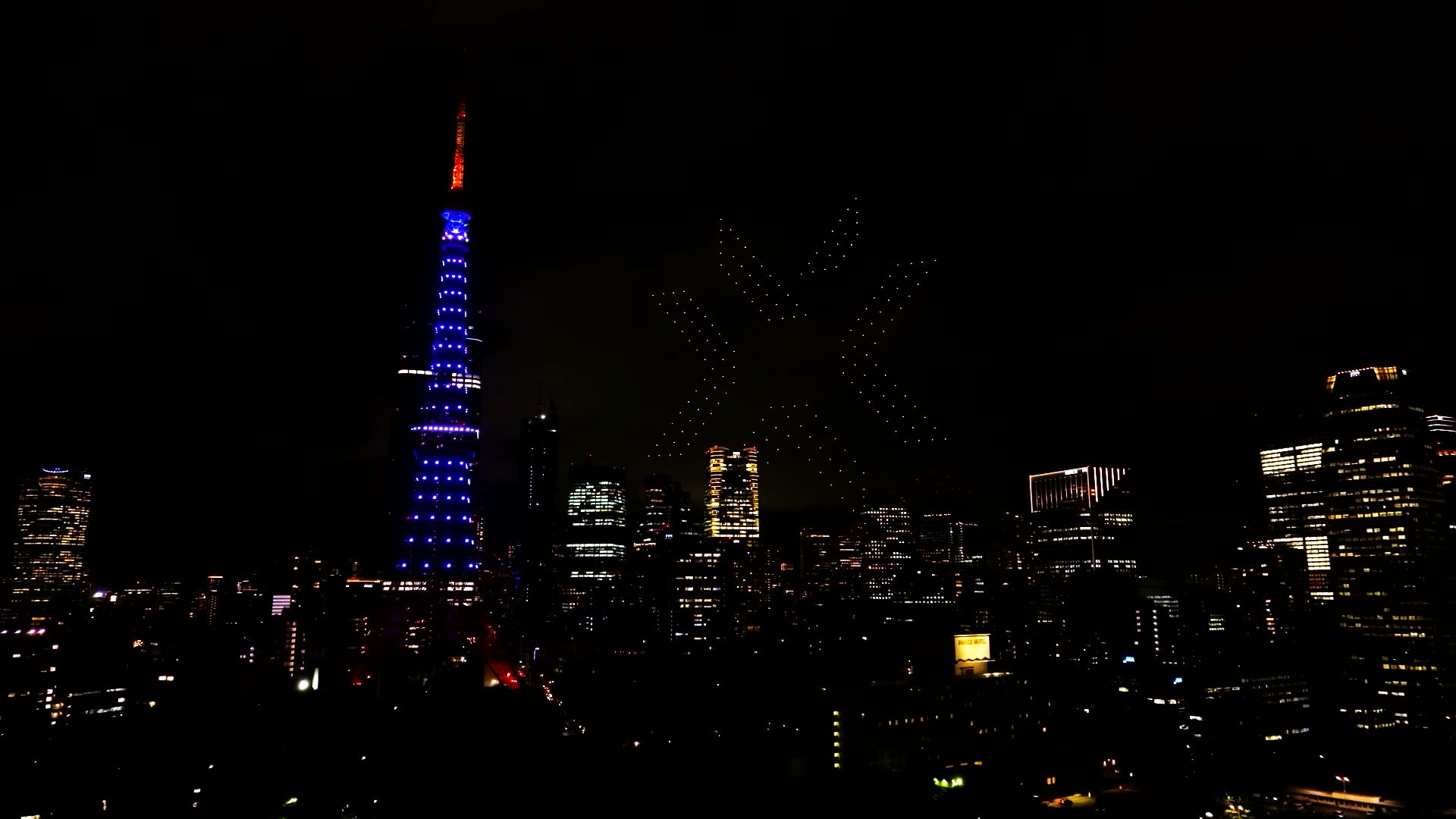 - 東京タワーがブランドカラーにライトアップされ、ドローンによる大会ロゴが出現。