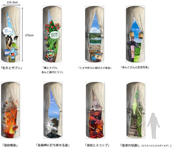 写真撮影が楽しめるポーズやキャラクターも登場し、伊豆大島の自然や文化が作品に取り入れられています。