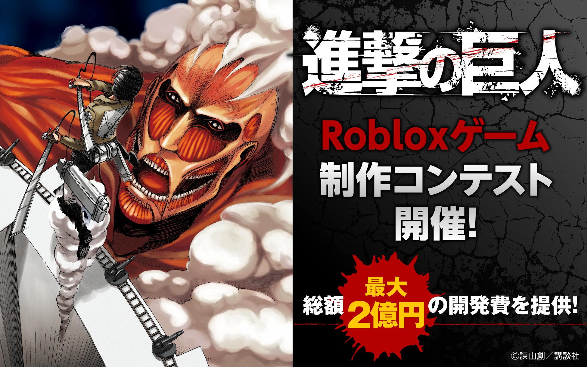 RobloxのGeekOut株式会社は、講談社とDEVLOXと共同で、Roblox × 『進撃の巨人』エクスペリエンス制作コンテストを開催します。